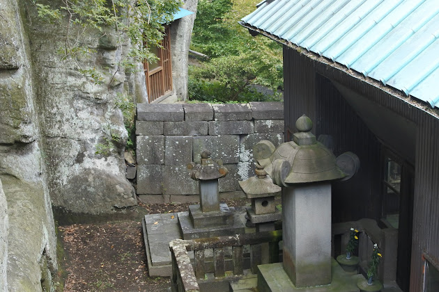 21 境内の一角に、崖を削ったと思われる場所があります。寺ができたのが江戸時代なので、鎌倉によく見られる室町時代頃の埋葬施設、"やぐら" ではないのかもしれません。