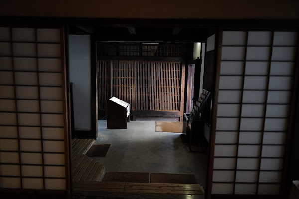 左側の面は障子ではありません。土壁と廊下のみ。狭い敷地の工夫なのでしょう。