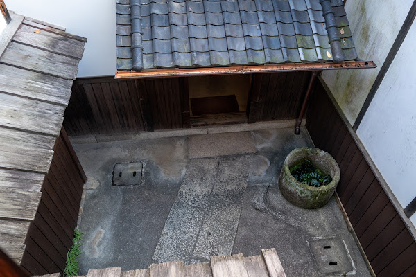21 二階から、台所への通り庭。右に見えるのは、井戸ですね。